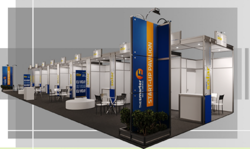 Apresente sua empresa no contexto de um estande compartilhado temático.
