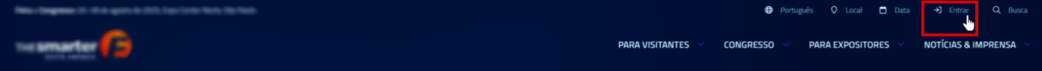 Você pode navegar em todos os sites The smarter E com um único login, que permanece válido mesmo quando você visita os diversos sites The smarter E e a plataforma sob demanda The smarter E Digital. O status do login aparece na caixa de informações no menu de serviços, localizada no canto superior direito, e você pode entrar novamente com apenas um clique.